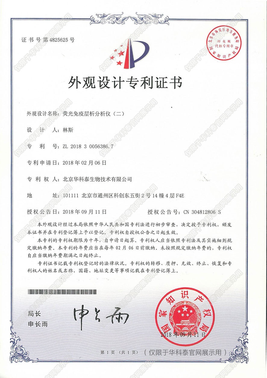 实用新型专利证书- 诊断早期急性心肌梗塞 标志物的联合检测卡